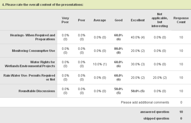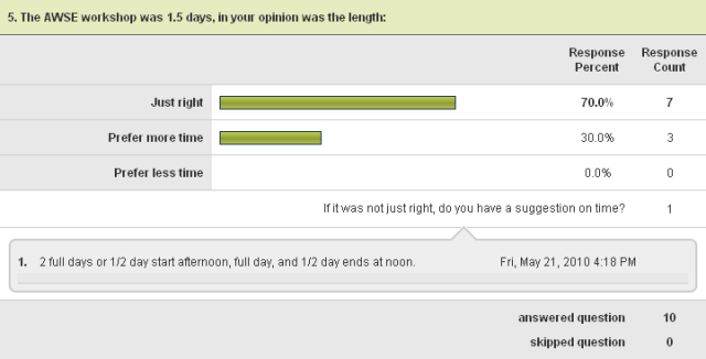 2010 AWSE Spring Workshop Survey Results